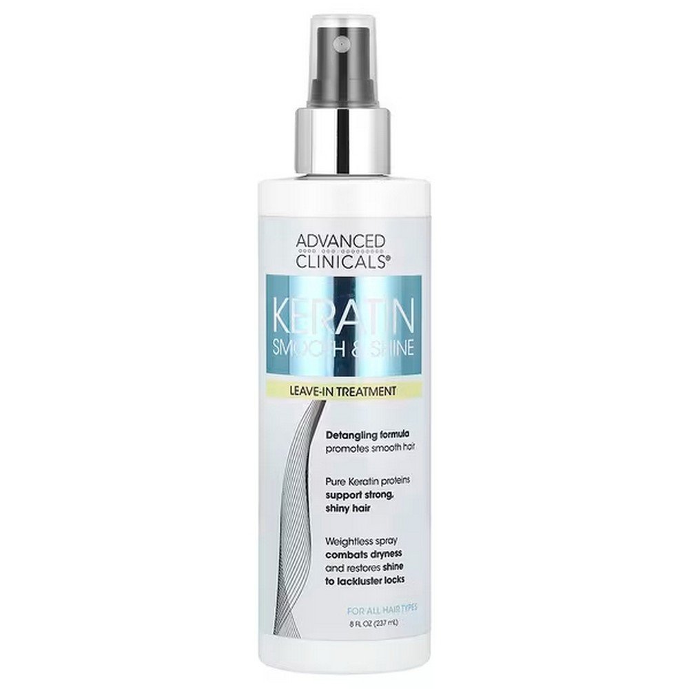 Advanced Clinicals Keratin Smooth & Shine Leave-in Treatment is a simple, convenient spray that protects, conditions and smooths your hair. Keratin provides a softer and silkier look by making the outer layer of hair less prone to frizz. Keratin works by smoothing hair cells and combating dryness.