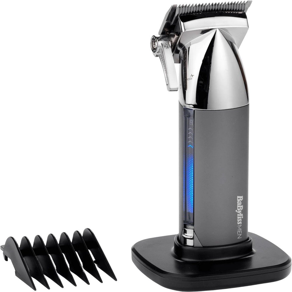 High performance and waterproof hair trimmer with rechargeable base and battery indicator. Battery life: 3 hours.