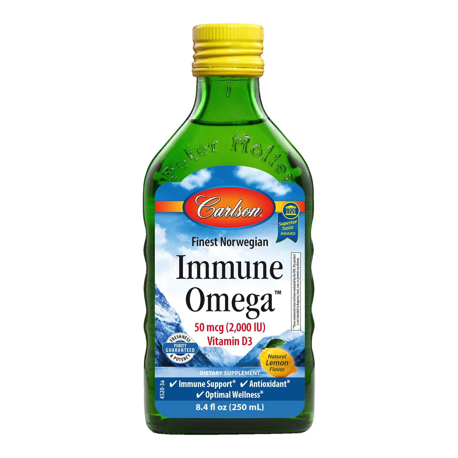 Carlson Immune Omega™ combines the immune-boosting benefits of vitamin D3 and omega-3 fatty acids. A single teaspoon provides 2,000 IU (50 mcg) of vitamin D3 in the form of cholecalciferol, the form of vitamin D our bodies naturally produce from the sun, and 1,100 mg of omega-3 fatty acids, including EPA and DHA.