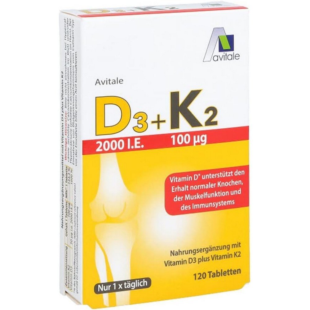 D3+K2 2000 IU + 100 mg Tablets Pack of 120,D3+K2 2000 IE + 100 mg Tabletten, 120 Stück