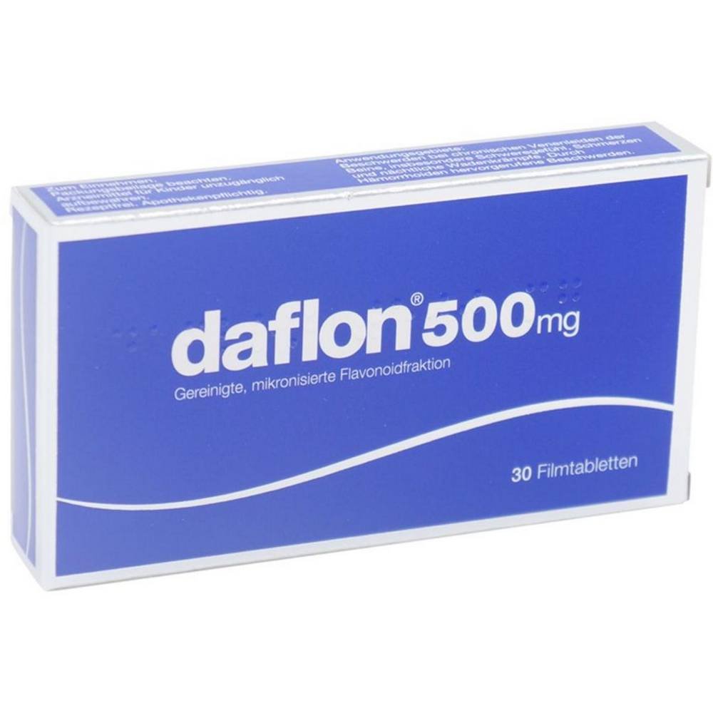 Daflon 500 mg 30 Stück Filmtabletten sind ein Venentherapeutikum zur Behandlung von funktionellen Symptomen bei chronischer Veneninsuffizienz der Beine, insbesondere Schweregefühl, Schmerzen und nächtliche Wadenkrämpfe