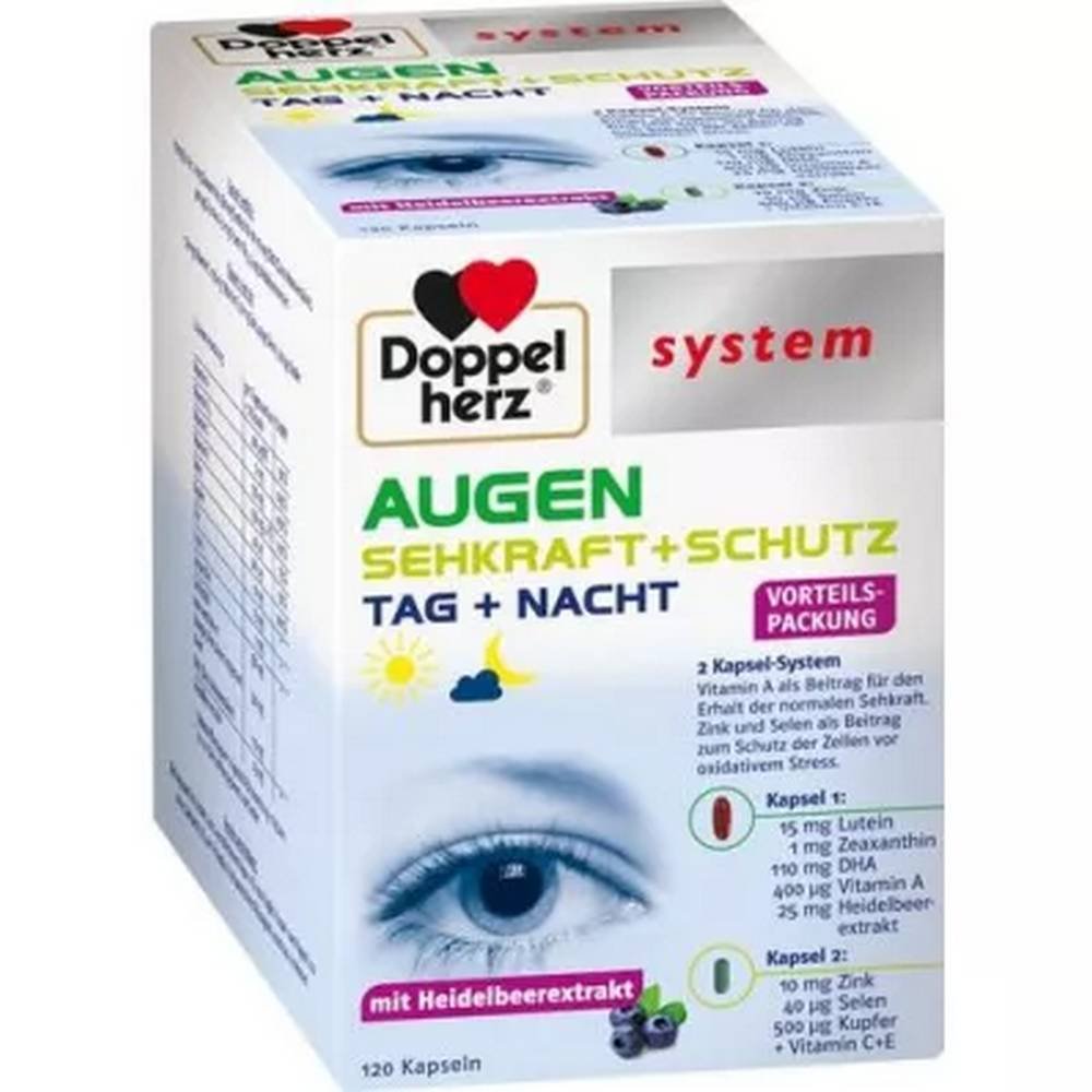 Doppelherz Eye eyesight+protection system capsules (pack size: 120 pc) are a dietary supplement. They support the cell metabolism of their eyes and thus make an important contribution to eye health. The 2 capsule system represents a meaningful and complementary combination of important vital and micronutrients, which is specially tailored to the supply of the visual cells and thus to their visual function and visual acuity.