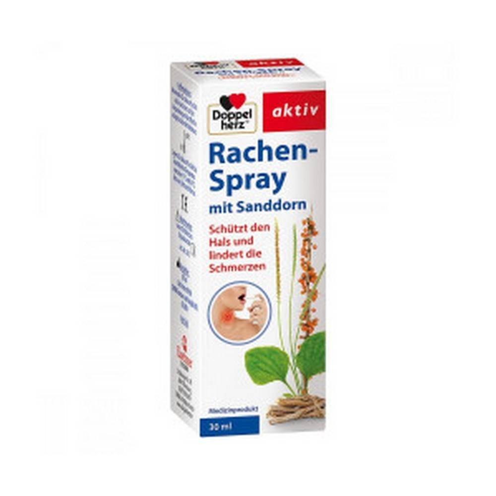 Doppelherz throat spray with sea buckthorn (pack size: 30 ml) is used for sore throats caused by external stimuli such as viruses, bacteria, smoke, allergens, dust). However , Doppelherz throat spray with sea buckthorn (pack size: 30 ml) can also be used for cold symptoms where excessive mucus can cause irritation in the throat .