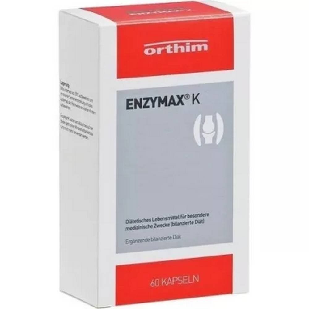 Enzymax K: Dietary food for special medical purposes (supplementary balance sheet diet). Enzymax K is a high -dose Enzyme preparation for the treatment of bruises, strains, sprains, muscle and joint pain, swelling, postoperative edema, Rheumatic diseases and arthrosis. Enzymax K contains natural nutrients, vitamins and other vital substances that are suitable to positively influence the complaints from the above patient and that in this amount not regularly accepted by normal nutrition become.