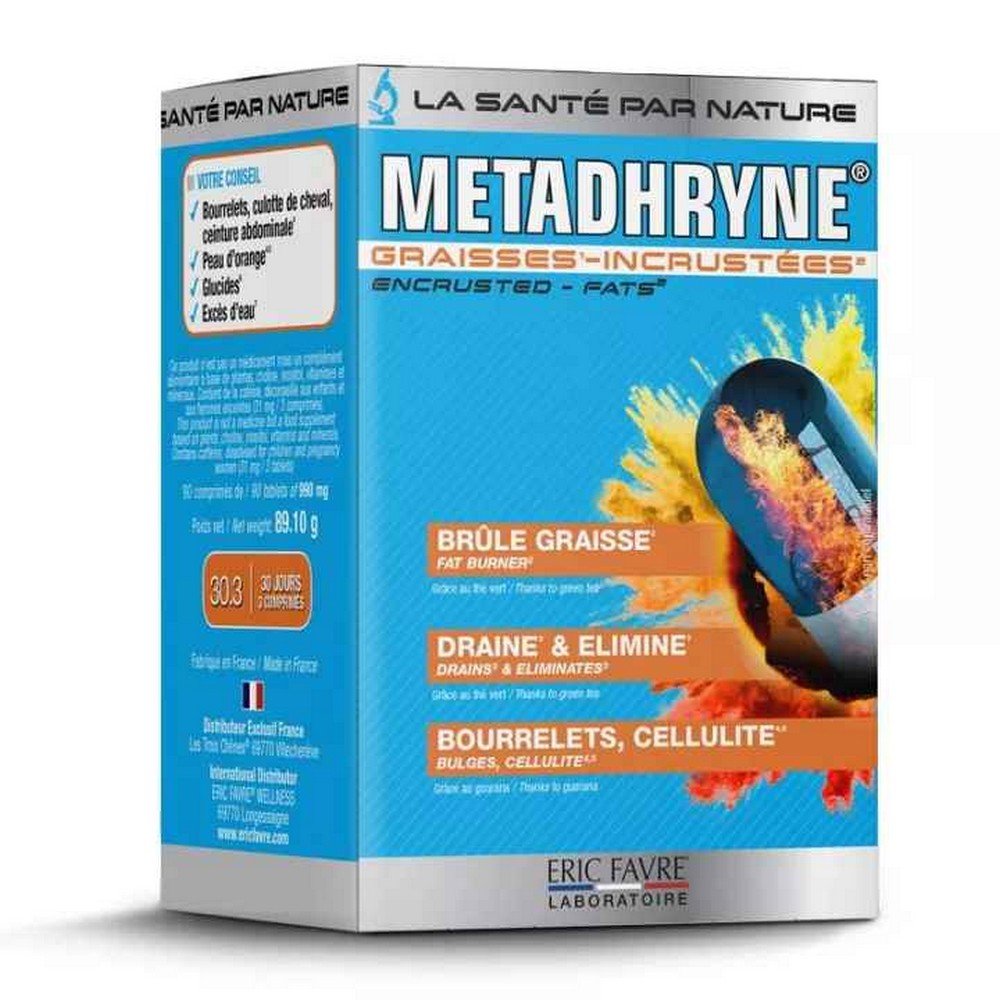 Eric Favre Metadhryne 30.3 is a diet- aids supplement. Composed of 21 active ingredients targeted for weight loss, it burns and destocks installed fat , drains the body to eliminate burned fat, promotes metabolism (transforms fat into energy) and accelerates thermogenesis. The vitamins and trace elements contained reduce fatigue during slimming programs.