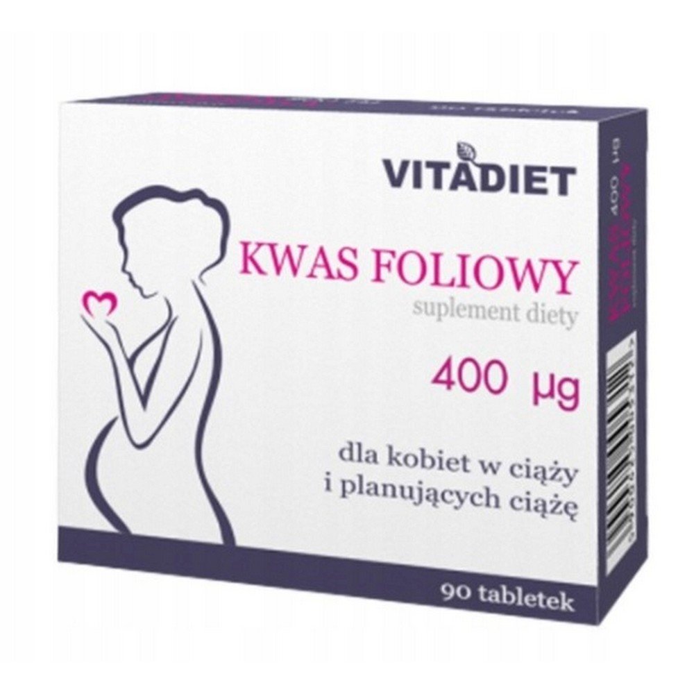 Folic Acid,Dietary supplement,400 mcg 90, Kwas foliowy, Suplement diety, 400 mcg 90,VitaDiet
