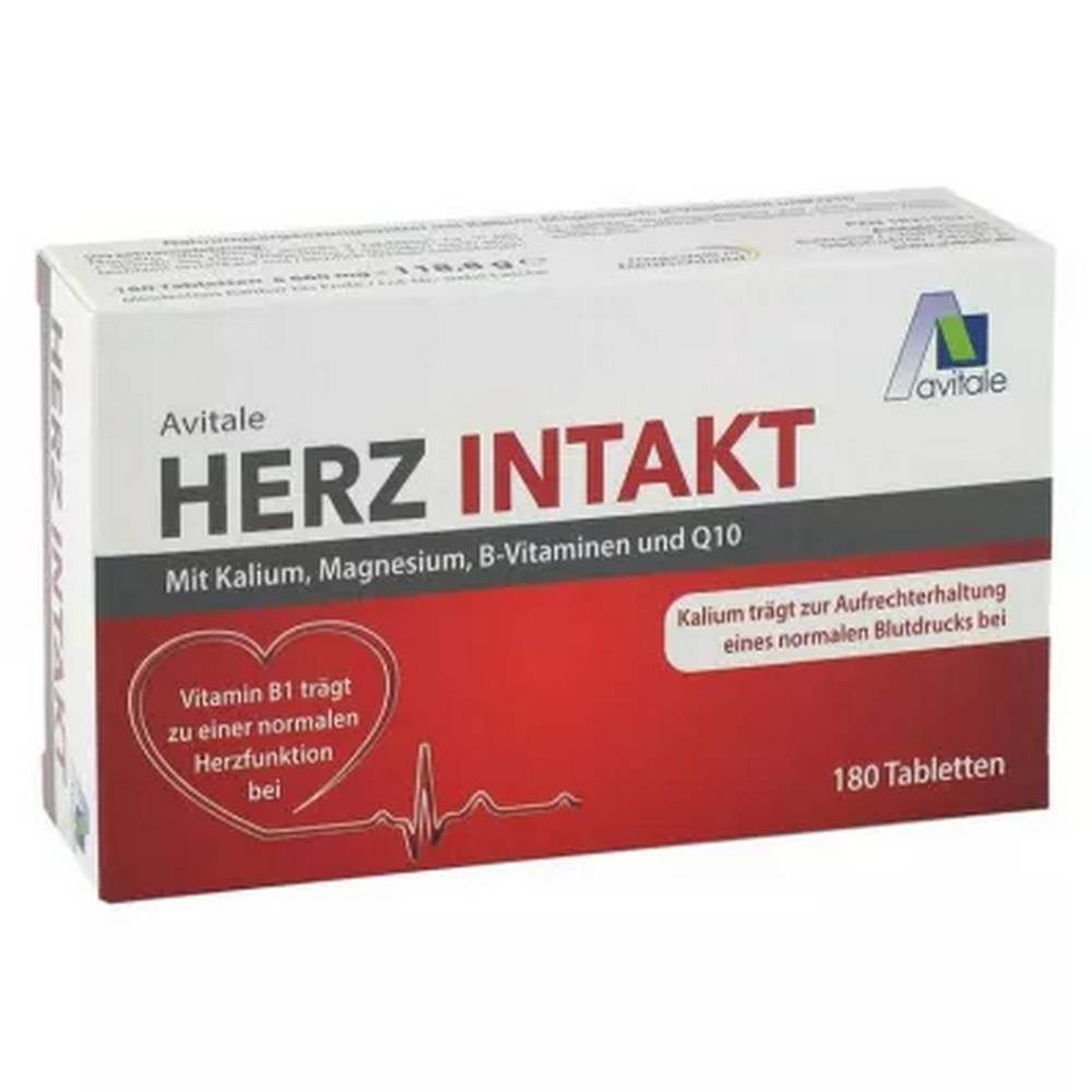 Heart intact with potassium + magnesium + B vitamins tablets (pack size: 120 pieces) are a dietary supplement with potassium, magnesium, B vitamins and Q10 to maintain normal blood pressure and normal heart function.