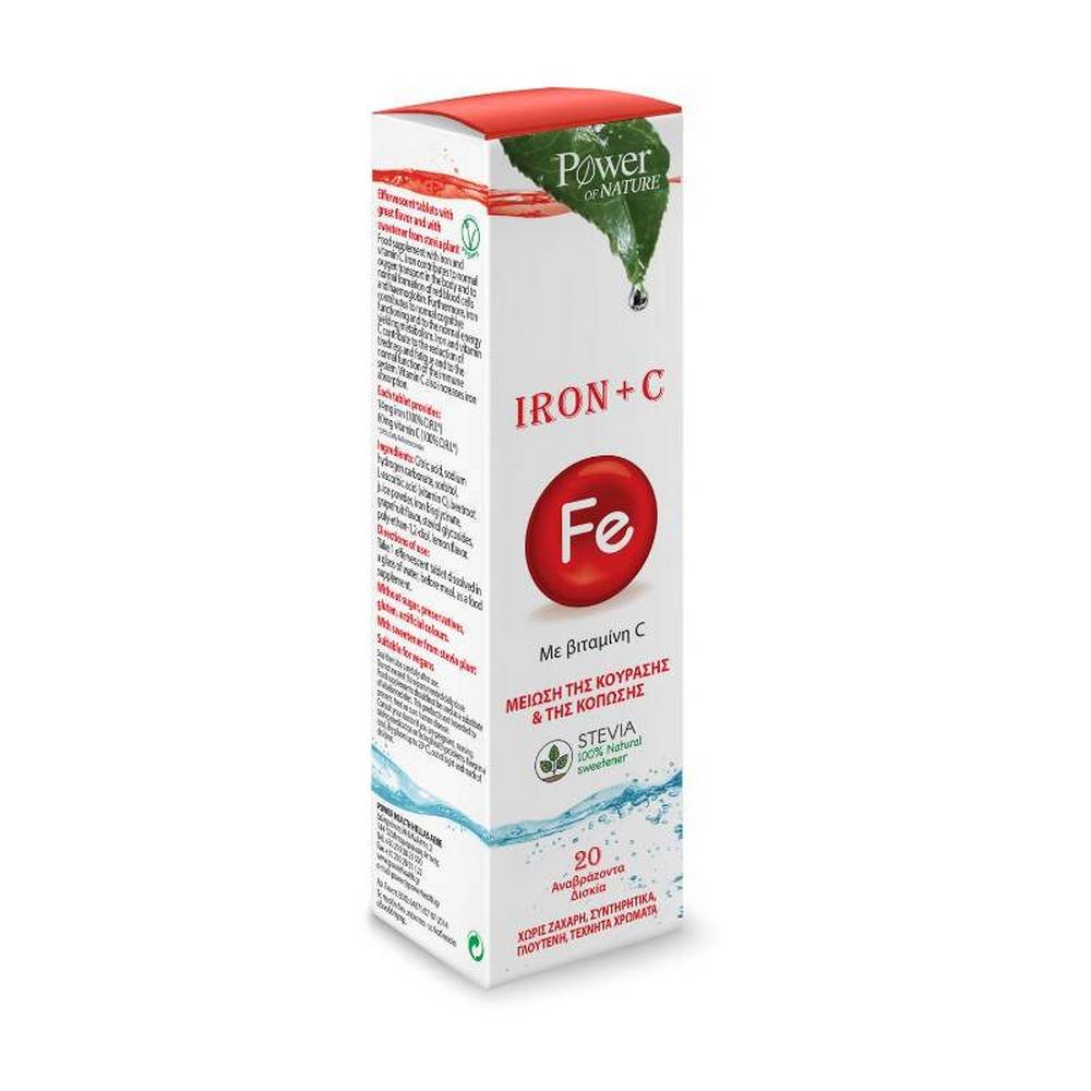 Effervescent tablets Iron + vitamin C x20 Power of Nature is a dietary supplement, which is a combination of iron and vitamin C in their most absorbable forms, for the normal level of iron in our body and for reducing feelings of tiredness and fatigue!
