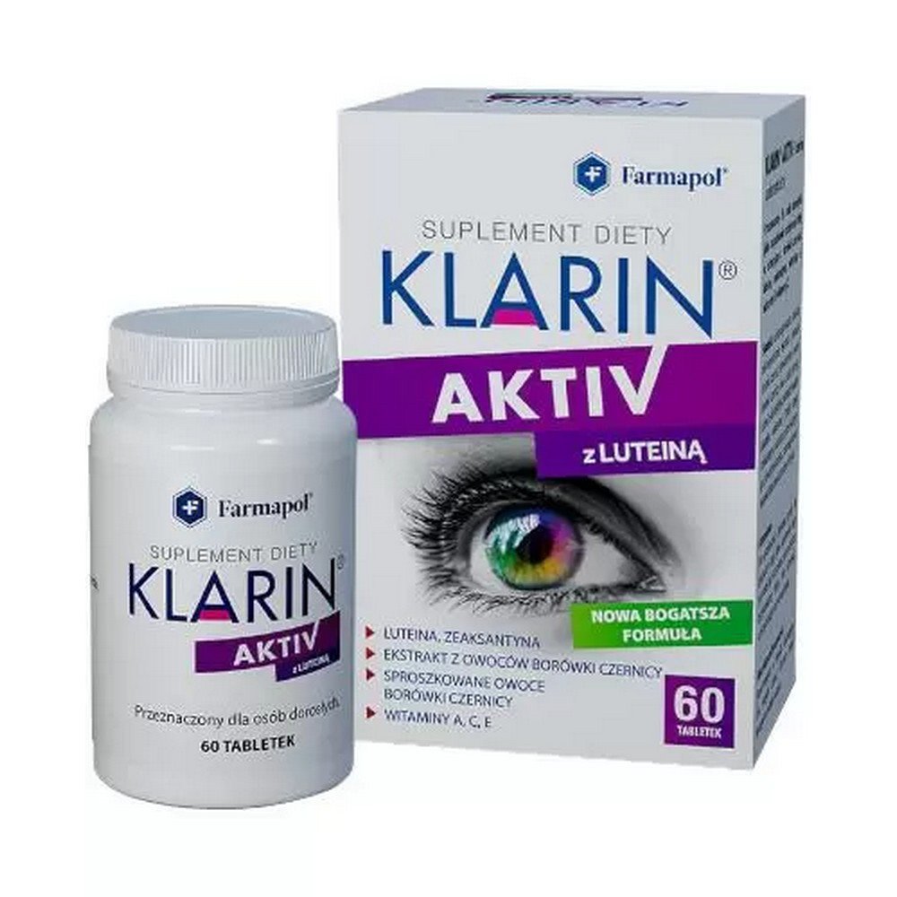 Klarin Aktiv is intended for adults as a supplement to the daily diet with anthocyanins from blueberries and lutein, as well as beta-carotene and vitamin E.