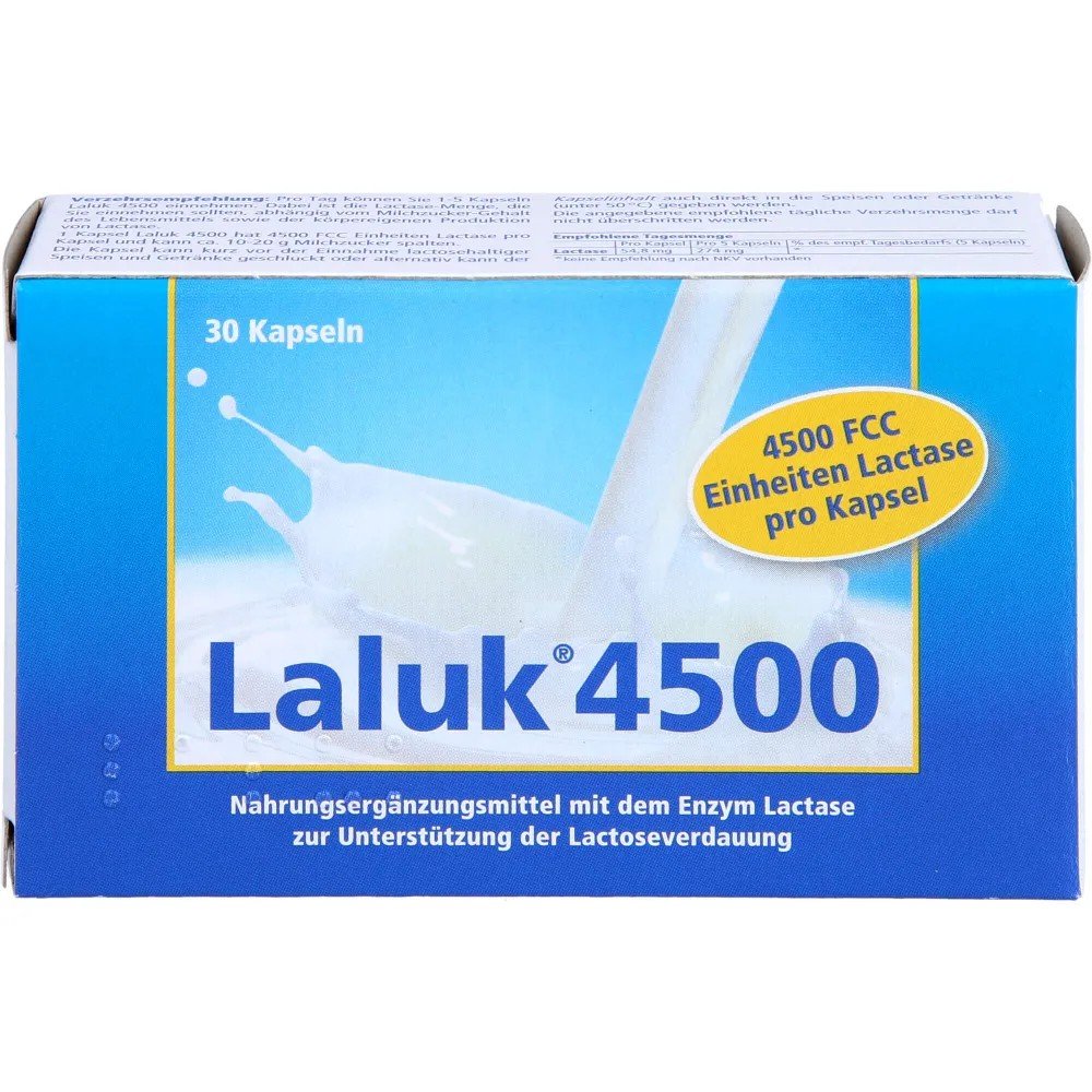 With Laluk 4500 the body is supplied with the enzyme necessary for the splitting of lactose. Afterwards it is again possible to enjoy milk and milk products carefree.