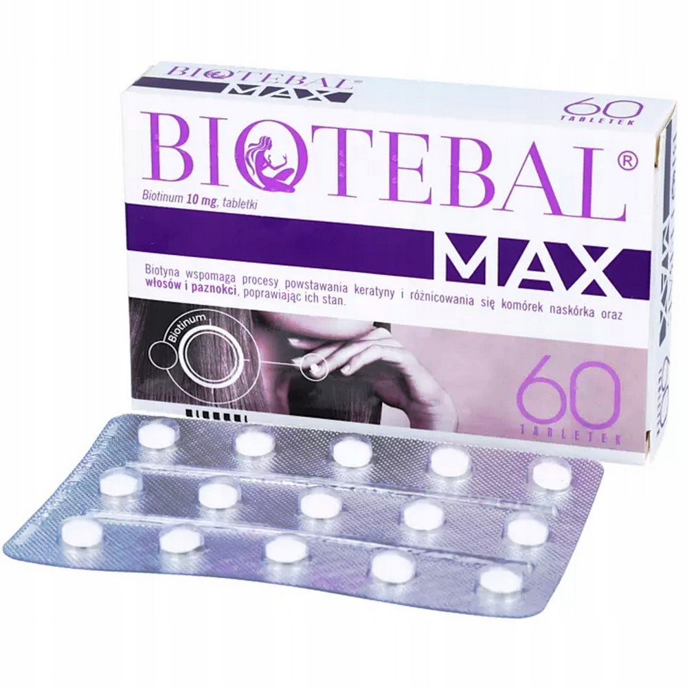 Biotebal Max to lek z grupy preparatów witaminowych, którego substancją czynną jest biotyna, nazywana inaczej witaminą H lub witaminą B7. Biotyna zaliczana jest do grupy witamin B rozpuszczalnych w wodzie. Witamina ta wspomaga procesy powstawania keratyny i różnicowania się komórek naskórka oraz włosów i paznokci.
