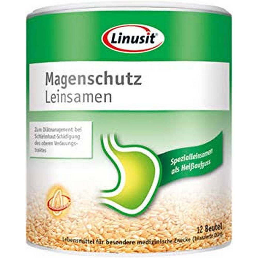 The seeds used for Linusit Flaxseed gastric protection are specially cultivated with a high proportion of soluble mucilage polysaccharides. Poured with hot water and drunk in sips, these form a protective film on the mucous membrane for accompanying diet management in the case of damage to the mucous membrane of the upper digestive tract: