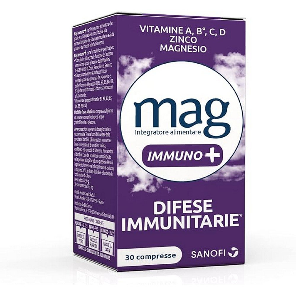 Mag Immuno+ is a supplement containing vitamins and minerals that support the immune defense thanks to 10 specific ingredients acting on the immune system: vitamin A, B6, B9, B12, C, D, zinc, iron, copper and selenium. Not suitable for children