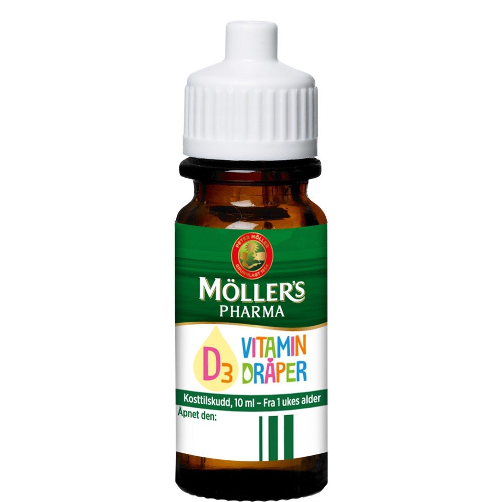 Möller’s Pharma D3 vitamin drops are already recommended from when the child is 1 week old. Vitamin D is necessary for normal growth and development of the bone structure in children, and contributes to the normal function of the immune system.