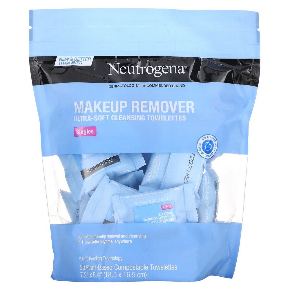 Neutrogena, Makeup Remover, Ultra-Soft Cleansing Towelettes, Singles, 20 Plant-Based Compostable Towelettes,Neutrogena, Make-up Remover Cleansing Towelettes, einzeln, 20 Feuchttücher