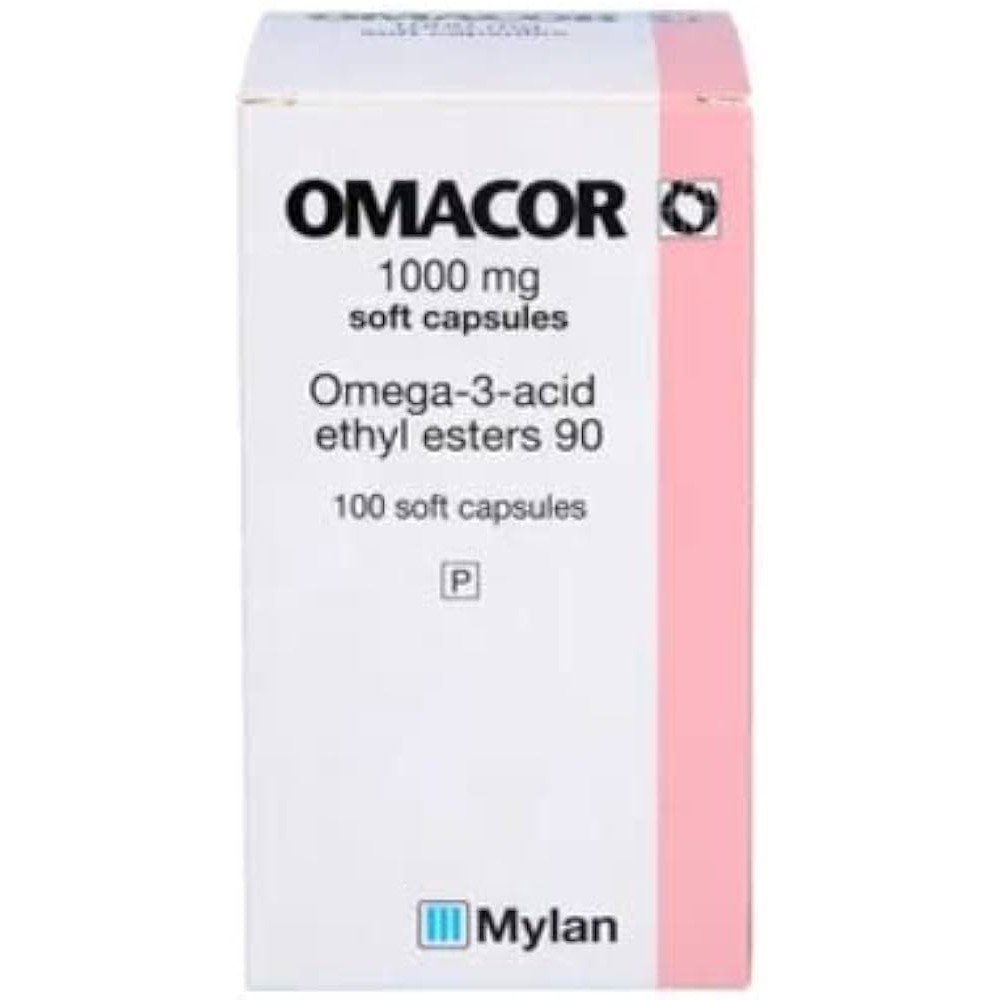 Omacor 1000mg soft capsules, 100 pieces are a high-purity omega-3 fatty acid supplement designed to support cardiovascular health and reduce elevated triglyceride levels. Each capsule contains EPA and DHA, essential omega-3 fatty acids clinically proven to help maintain normal heart function.