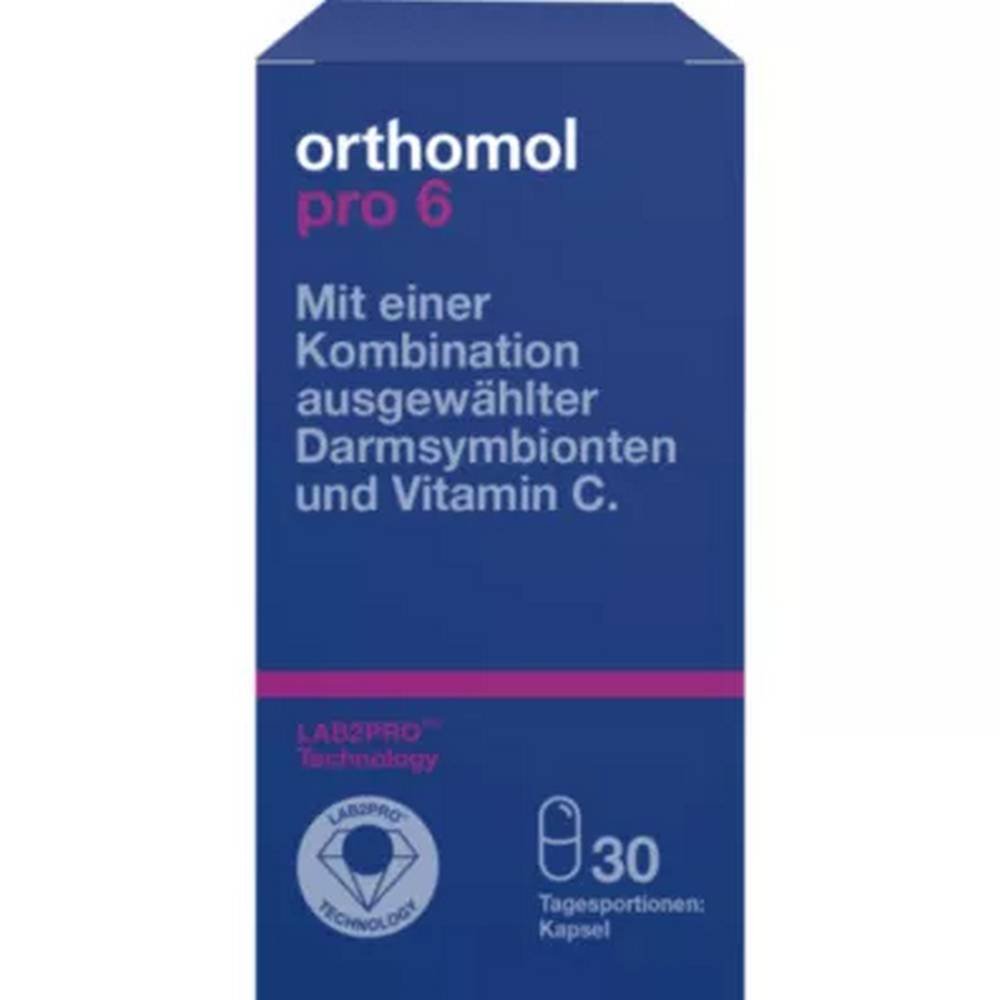 Orthomol Pro 6 capsules (pack size: 10 pcs) are a dietary supplement with a combination of selected intestinal symbion and vitamin C.