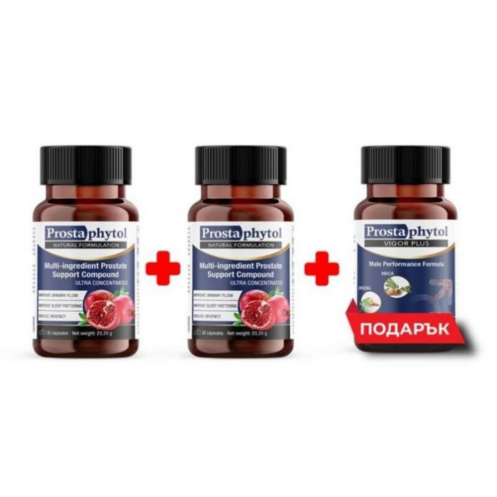 The promotional package includes 2 packages of Prostaphytol 30 capsules and 1 package of Prostaphytol Vigor Plus for men