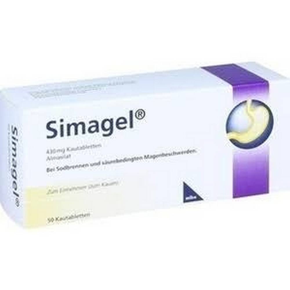 Simagel (pack size: 20 pieces) chewable tablets are used to bind excess gastric acid. Diseases in which the stomach acid is to be bound, such as heartburn, acid-related stomach problems and stomach or duodenal ulcers can be treated with Simagel (pack size: 20 pieces) chewable tablets.