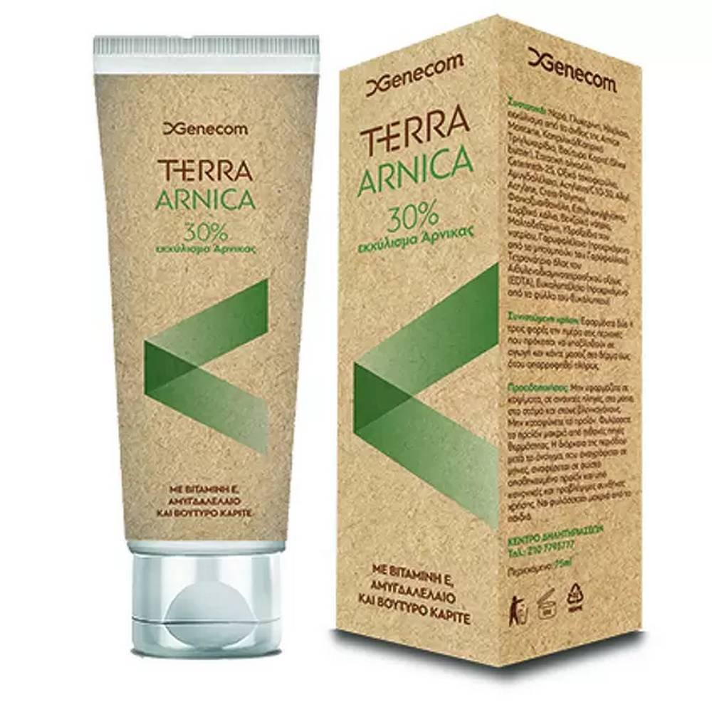 Genecom Terra Arnica cream 30% is a cream with arnica extract, vitamin E, almond oil and shea butter, for skin bruises, muscle, joint and tendon pains.