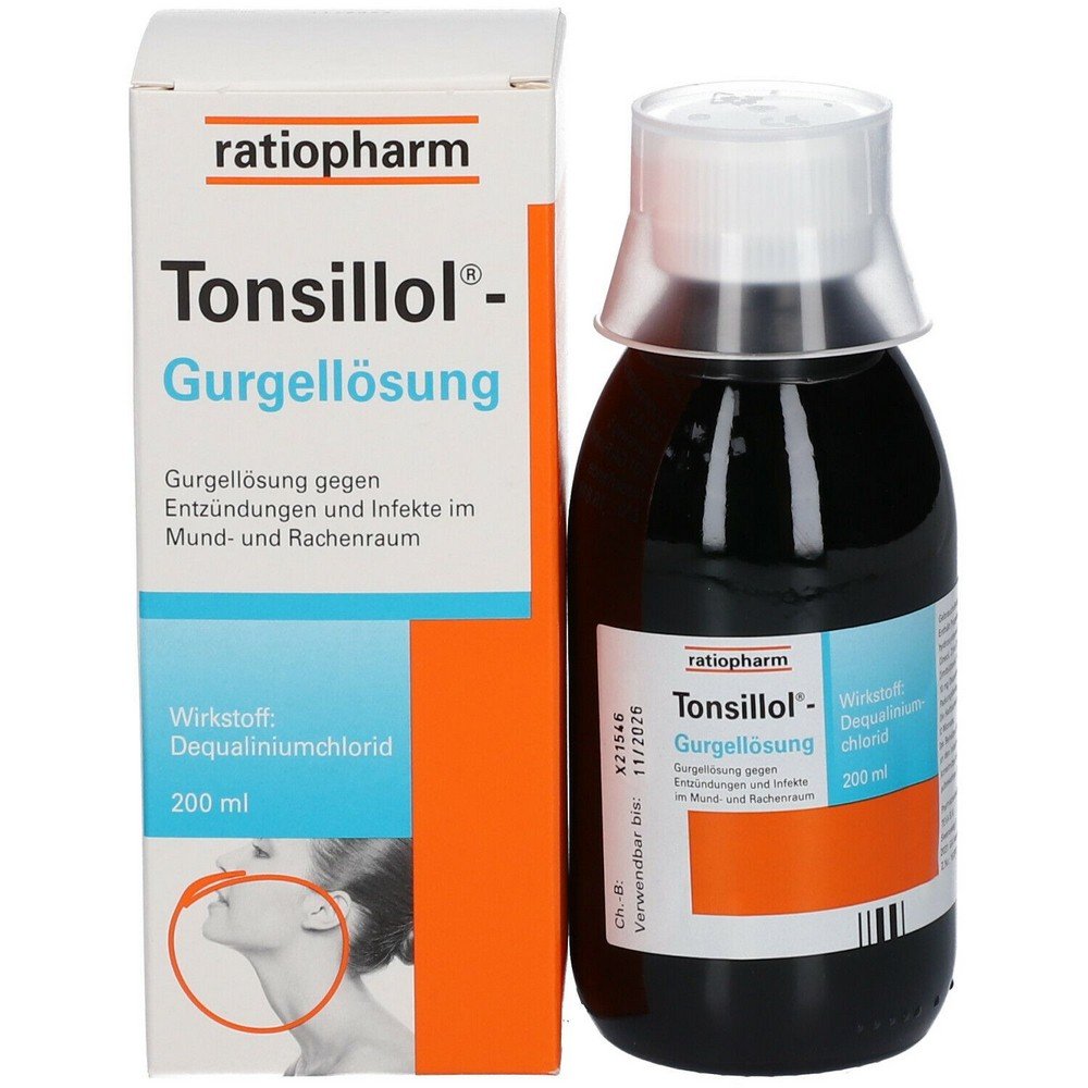 Type of application: For gargling or rinsing. Duration of use: Tonsillol gargle solution should be discontinued a few days after the symptoms have subsided. Note: If the symptoms are accompanied by fever, or if the symptoms do not subside significantly after 3 days at the latest, a doctor should be consulted, as there may be tonsillitis that requires treatment and can trigger serious secondary diseases of the heart and kidneys.